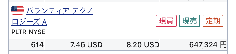 パランティアは50万円くらいなで、微益くらいなのとそんなに株価強くないので