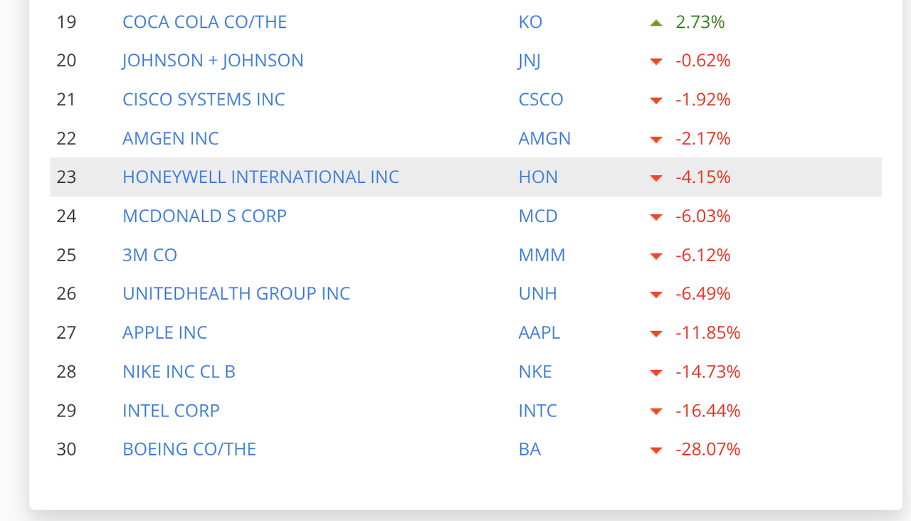 ダウでDISディズニーが1番パフォーマンス良くなっているのがおもしろい。