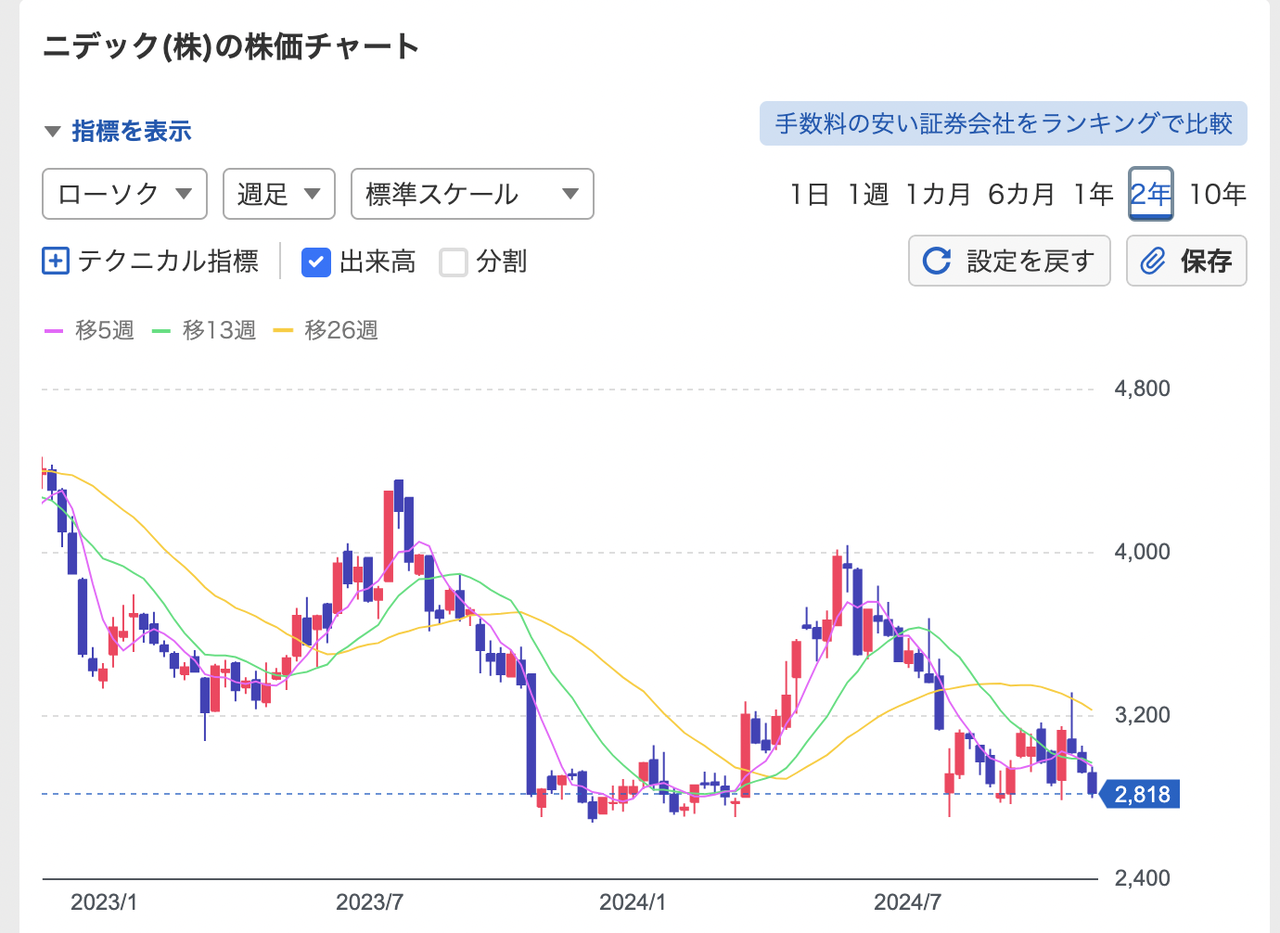 ニデックの株価は下落トレンドです。