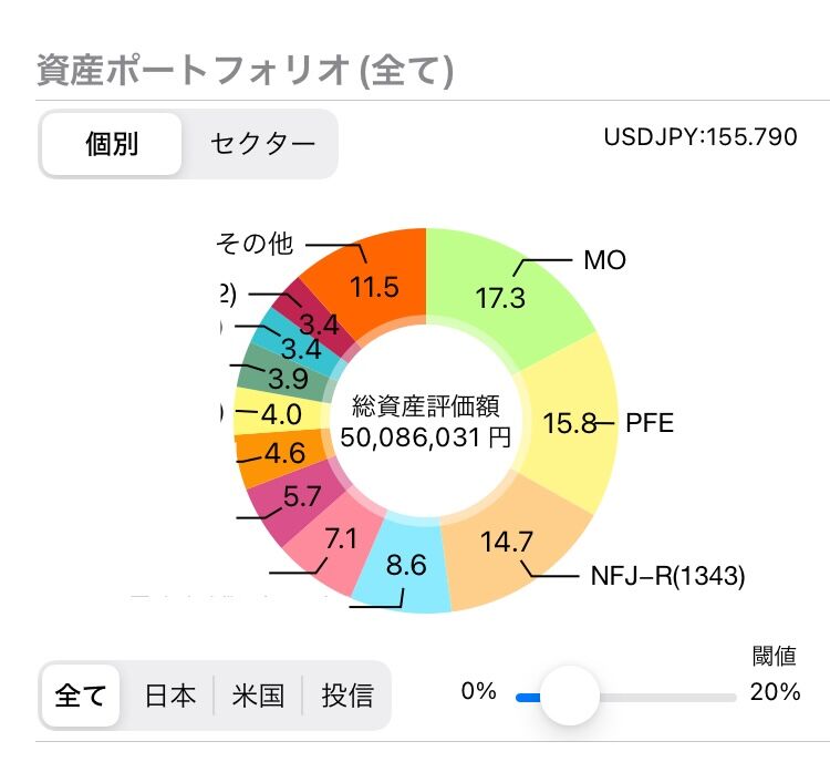 配当の価値も大きくなりますが、成長株にも振り分けているので株価