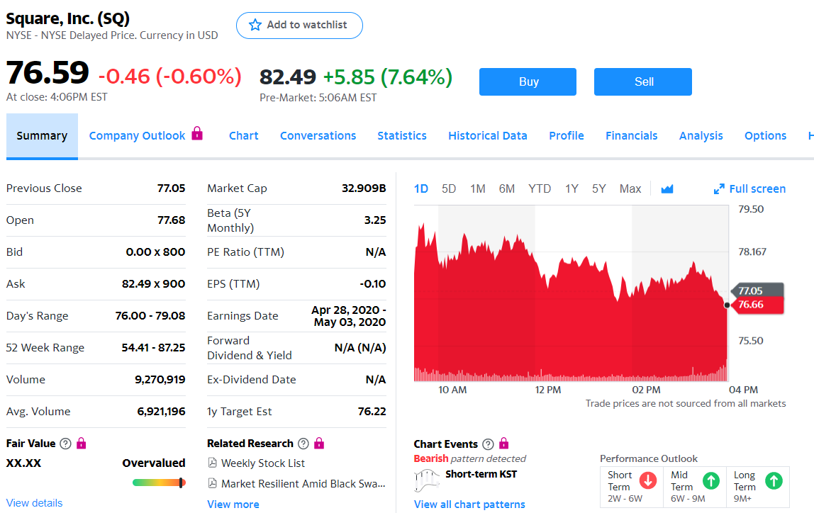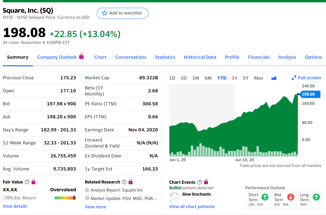 予想を超えた決算のため、スクエア(SQ)株価時間前で急上昇しています。